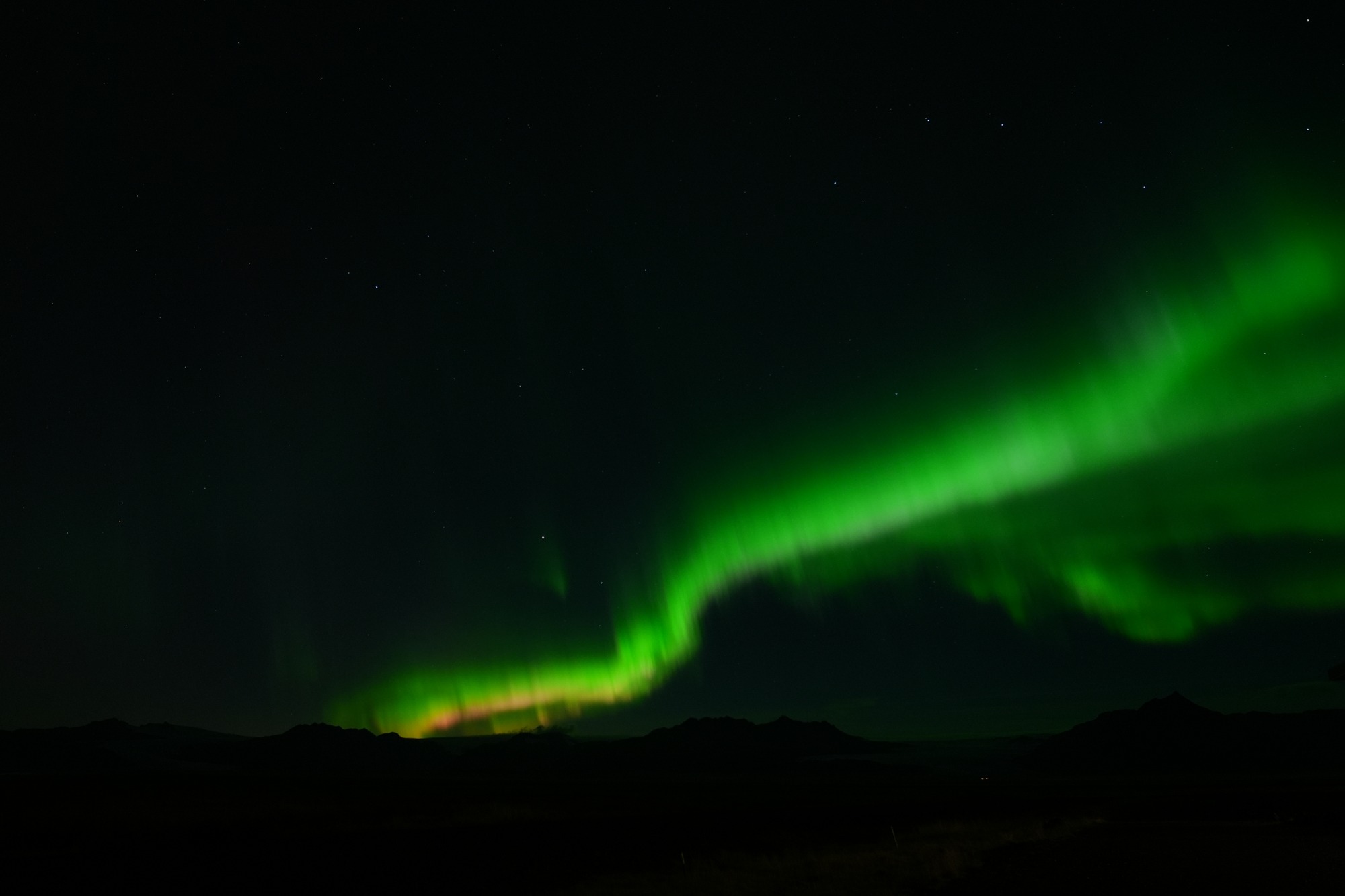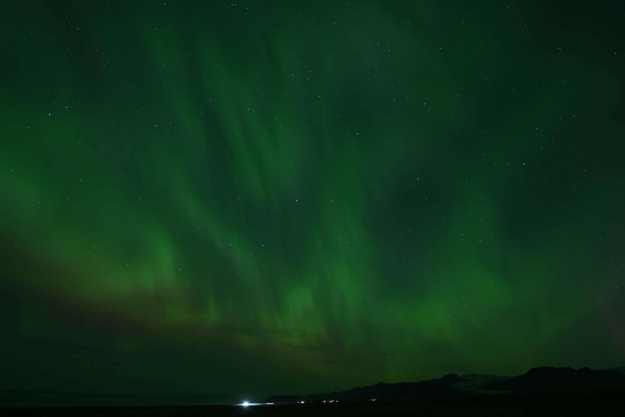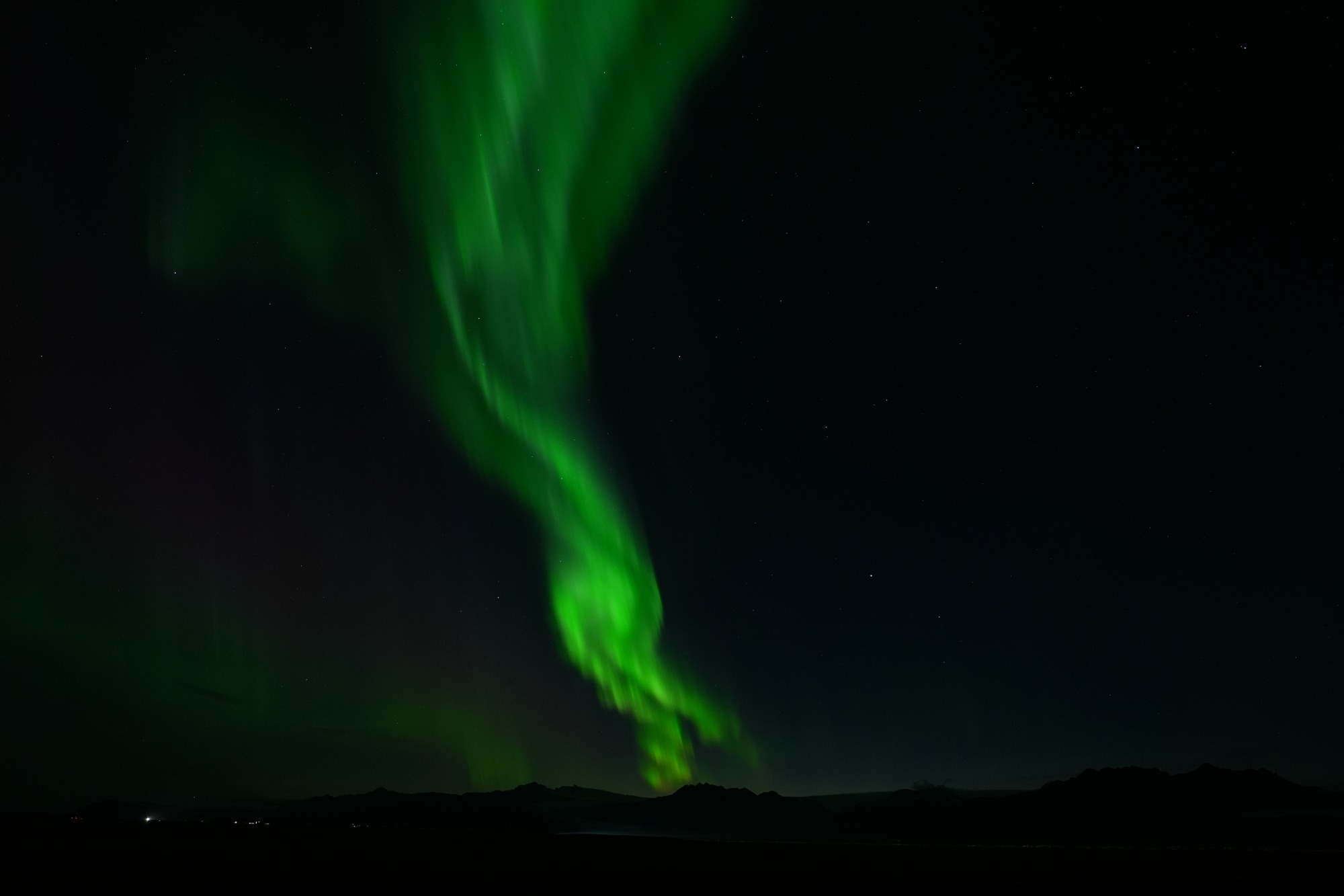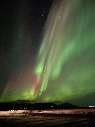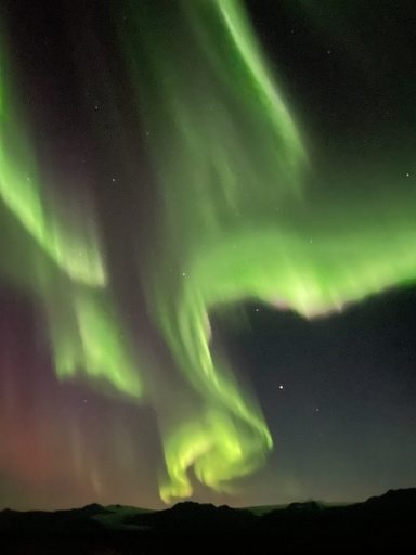Hierbei handelt es sich natürlich nicht um Lightpainting im klassischen Sinne, aber auch die Natur kann mit Licht und Farben auf beeindruckende Weise spielen. Nach dem wir uns ausführlich mittels diverser Apps und Vorhersagen informiert hatten, hatten wir das Glück während unserer Island Rundreise an einem Abend besonders starke Polarlichter zusehen und fotografieren zu können. Da wir eine Unterkunft außerhalb der Städte gebucht hatten, mussten wir nichts weiter tun als vor die Tür unseres Zimmers zugehen um das Naturschauspiel in allen Farben zu bewundern. Dabei war es besonders beeindruckend, wie sich das Polarlicht wie eine Kuppel über den gesamten Himmel ausbreitete und tanzte. Ein Ereignis, was man nicht wieder vergisst und gerne teilen möchte.