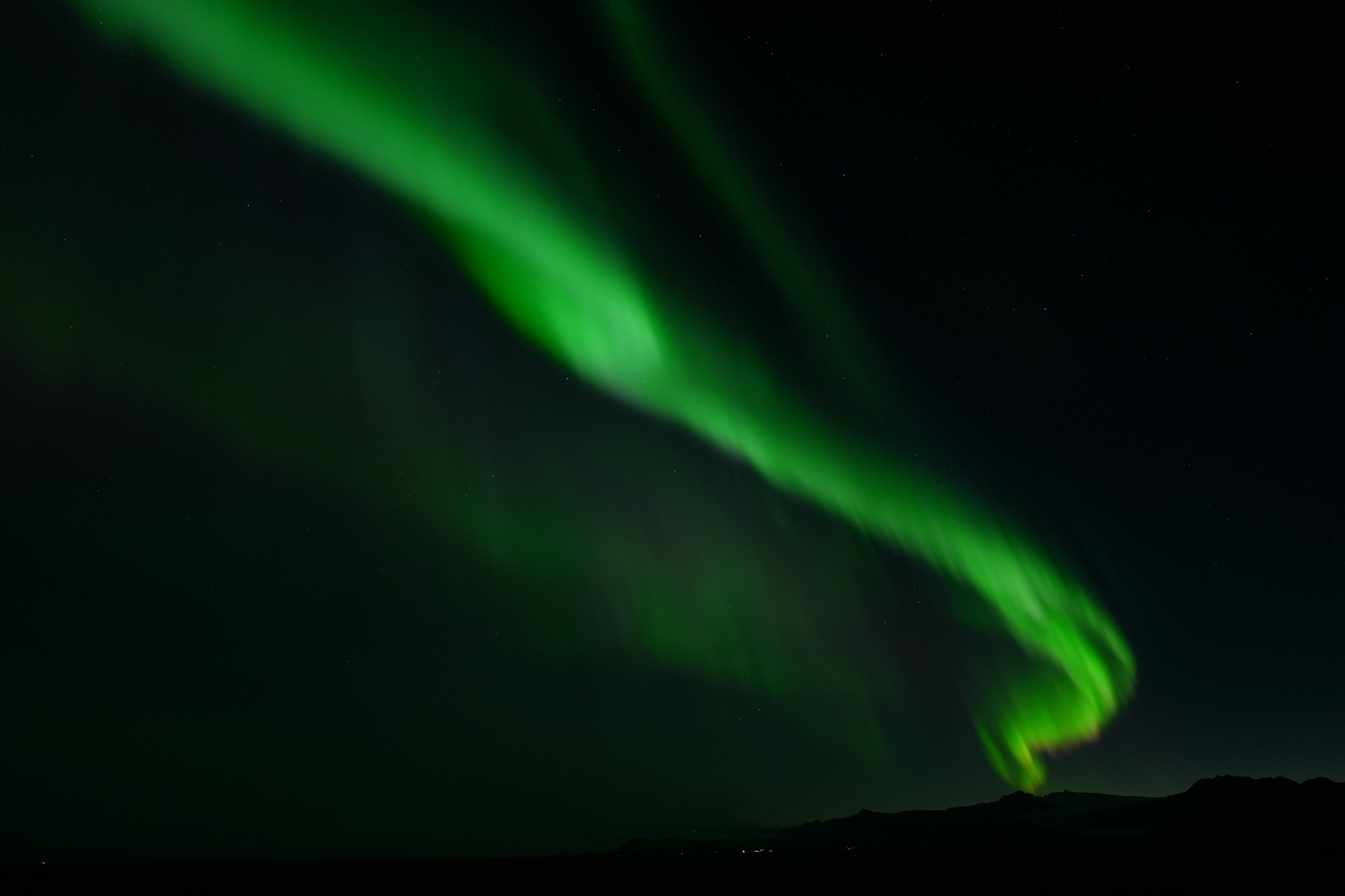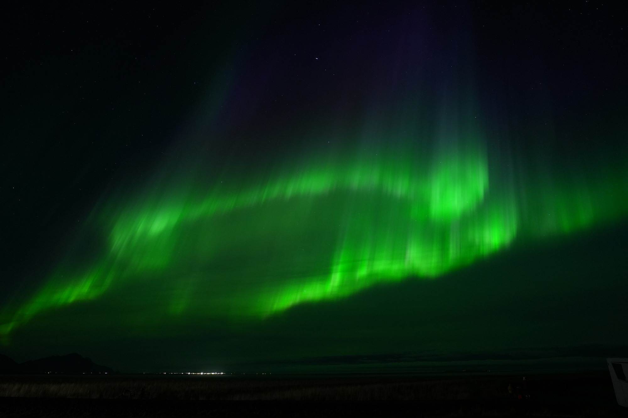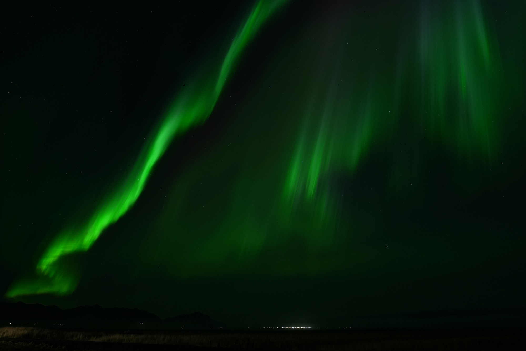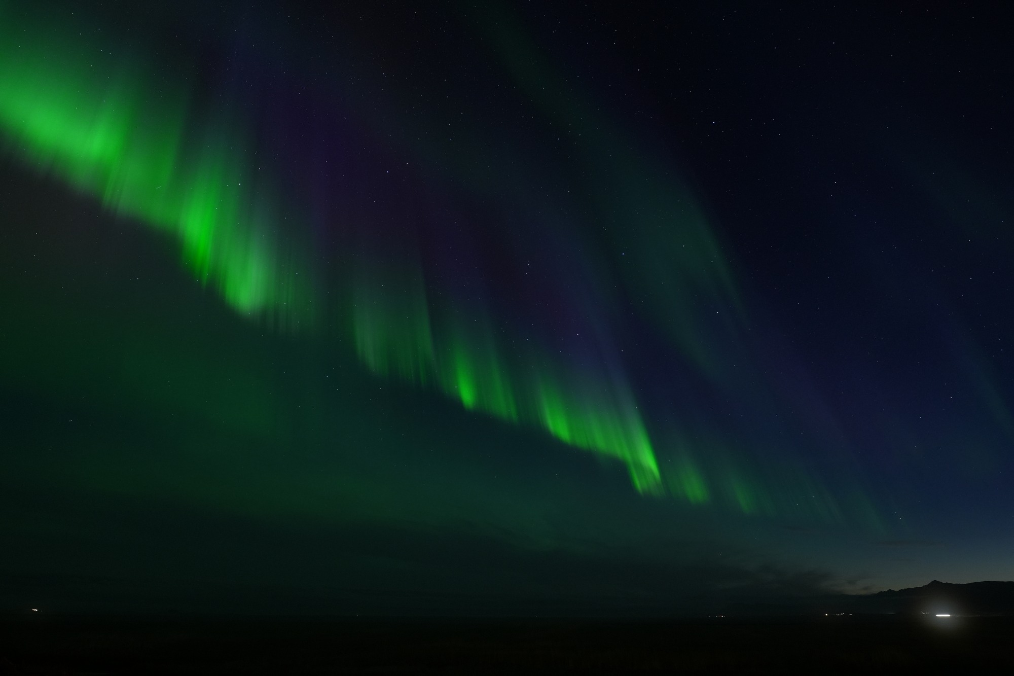 Hierbei handelt es sich natürlich nicht um Lightpainting im klassischen Sinne, aber auch die Natur kann mit Licht und Farben auf beeindruckende Weise spielen. Nach dem wir uns ausführlich mittels diverser Apps und Vorhersagen informiert hatten, hatten wir das Glück während unserer Island Rundreise an einem Abend besonders starke Polarlichter zusehen und fotografieren zu können. Da wir eine Unterkunft außerhalb der Städte gebucht hatten, mussten wir nichts weiter tun als vor die Tür unseres Zimmers zugehen um das Naturschauspiel in allen Farben zu bewundern. Dabei war es besonders beeindruckend, wie sich das Polarlicht wie eine Kuppel über den gesamten Himmel ausbreitete und tanzte. Ein Ereignis, was man nicht wieder vergisst und gerne teilen möchte.