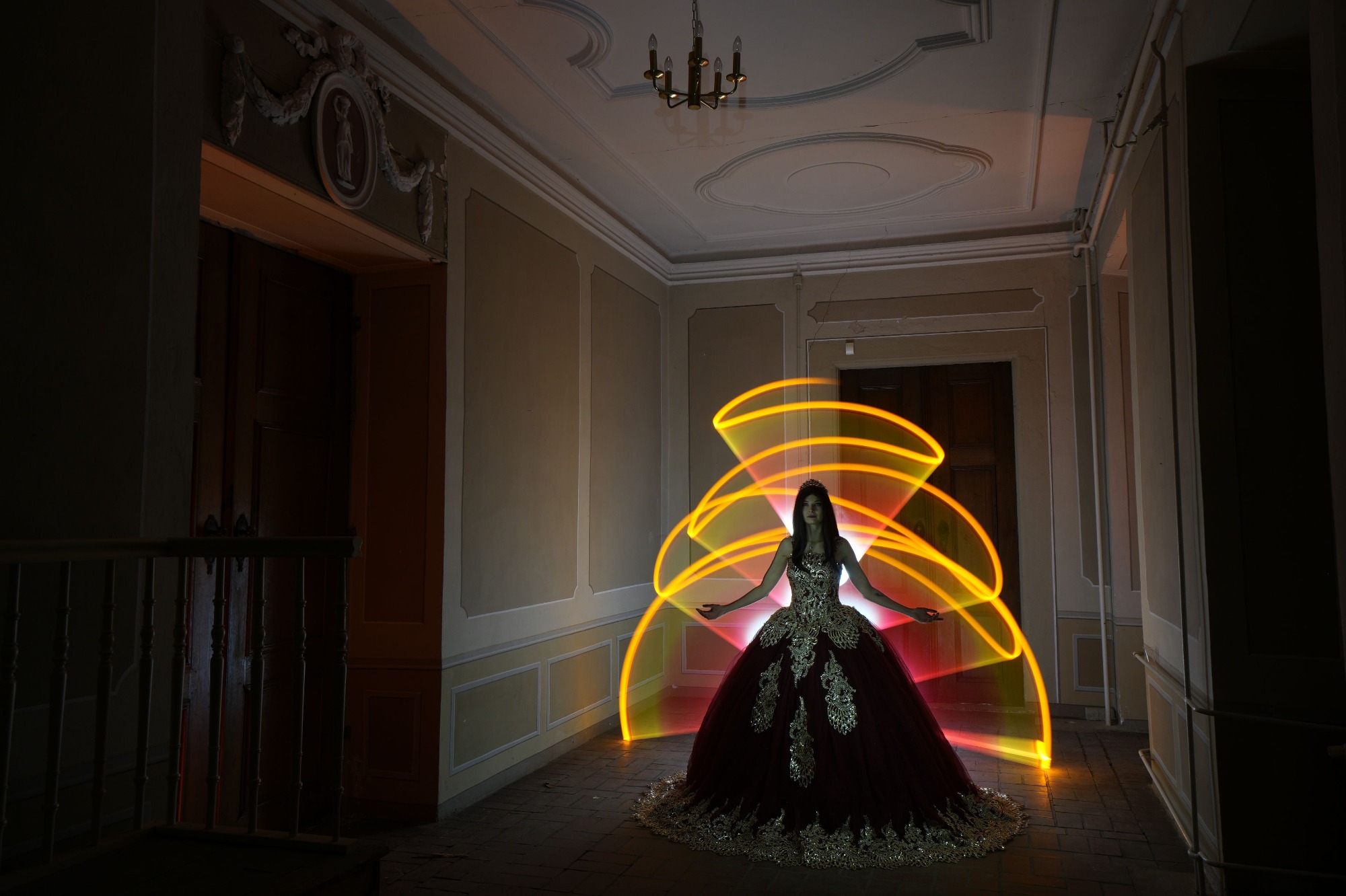 Nach ersten Lightpainting Workshops und Erfahrungen in Berlin und Leipzig sollte es diesmal ein Wochenende in Crossen sein. Zwei Nächte stand uns das Schloß in kleiner Gruppe zur Verfügung, um sich mit einer Vielfalt von Lightpainting Themen vertraut zu machen. In der zweiten Nacht kam zusätzlich die Talisa zu uns nach Crossen und mit ihren beeindruckenden Outfits konnte eine Vielzahl weiterer Aufnahmen erstellt werden. Besonders die Kulisse des Saals mit den barocken Malereien diente als Hintergrund für viele schöne und teils auch aufwändige Motive. Zusätzlich konnte am Samstag dieser Lost Place nach einer kurzen Führung tagsüber auf eigene Faust erkundet werden. Das Schloß ist ein wirklich eindrucksvoller Ort zum Fotografieren und hoffentlich bleibt die Location noch lange erhalten. Vielen Dank an Olaf und Tabea für dieses wunderbar organisierte und angenehme Wochenende in Crossen!