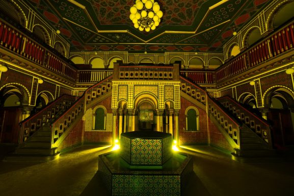 Dieser Workshop war bereits meine zweite Lightpainting Session im Alten Stadtbad in Leipzig. Wie bereits ein Jahr zuvor bietet dieser einmalige Lost Place eine einzigartige Kulisse für die verschiedensten Lightpaintings und so erstellten wir Bilder über die gesamte Palette von floralen Ornamenten bis hin zu Orbs mit und ohne Modell. Besonders die Kulisse der orientalischen Sauna bietet schon allein tolle Aufnahmen und entwickelt ein noch spezielleres Ambiente, wenn man Lightpaintings passend in den Ort integriert. Eine entscheidene Bedeutung kommt dabei der Ausleuchtung des Ortes zu, welche passend auf die Kulisse abgestimmt sein muss und das gegebene Ambiente dezent unterstützen sollte. Auch Elemente wie zum Beispiel der Kronleuchter sollten dabei nicht vergessen und ebenfalls kurz ausgeleuchtet werden. Auch der Brunnen oder die Treppen bieten eine gute Ausgangsbasis für Lightpaintings und können für Motivideen verwendet werden. Vielen Dank an Tabea und Olaf für die vielen neuen Eindrücke und Ideen an diesem einmaligen Ort, welche uns eine super Grundlage für den Coaching Workshop am Ende des Jahres bieten.