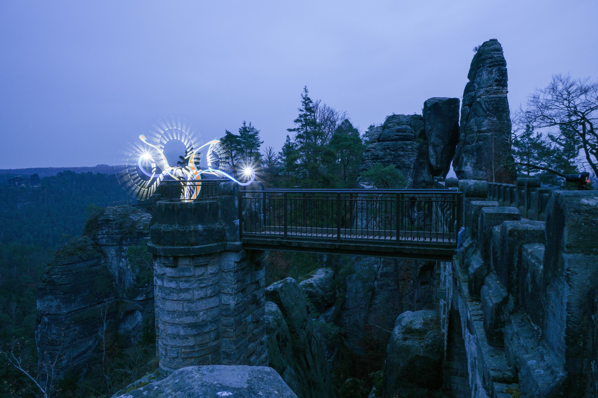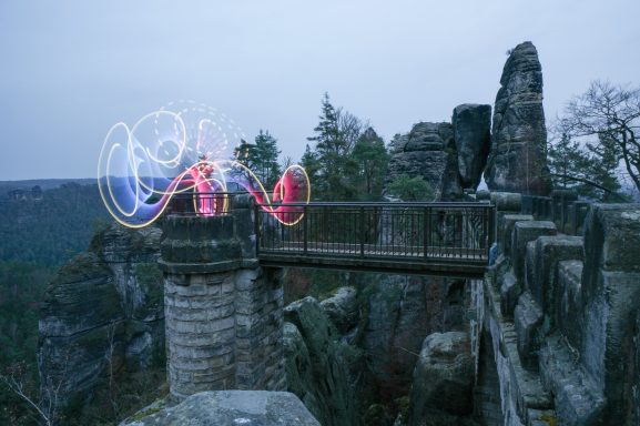 Auch beim Fotocamp HerbstlichT Wochenende wurde auf das Thema Lightpainting eingegangen. Im Rahmen eines Workshops wurden die Grundlagen des Lightpaintings auf der Festung Königsstein von Olaf Schieche erläutert. Jedoch war für mich eher der Hauptgrund meiner Teilnahme, Motive vor dieser beeindruckenden Kulisse zu erstellen und die einmalige Atmosphäre auf der Festung zu erleben. Dank der Organisatoren konnten alle störenden Lichtquellen auf der Festung abgeschaltet werden und wir hatten freie Ortswahl für unsere Aufnahmen. Darüber hinaus hatten wir noch das Glück einen wunderschönen Sonnenuntergang zu erleben, bevor wir mit dem eigentlichen Workshop starteten sowie am Ende noch Langzeitaufnahmen des Elbtals von einer der bekannten Festungsaussichten zu erstellen. Vielen Dank an Olaf für den gelungenen Abend.